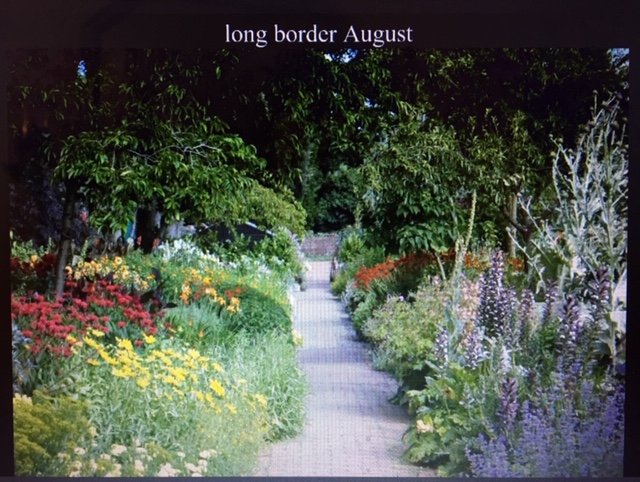 Steve outlined quite a few of his gardening principles during the talk, including how to cover the ground so that there are not great expanses of bare earth at any time of the year, and used The Salutation Garden to illustrate how he did it. This time of year can be tricky, but as first frosts seem to get later, and not decimate things in the garden, the idea of planting wallflowers and not cutting everything back to 'put the garden to bed' and make it tidy certainly helps to keep the soil covered with plants in the winter.